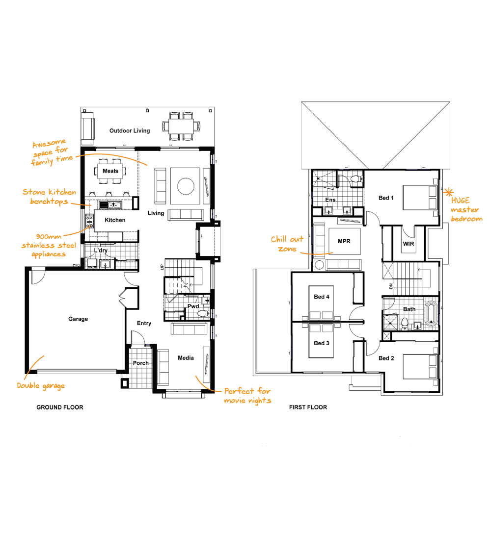 With bright and breezy open-plan living, a media room and an upstairs retreat, this home has all the space a growing family needs when it’s time to be together and time to spread out.
