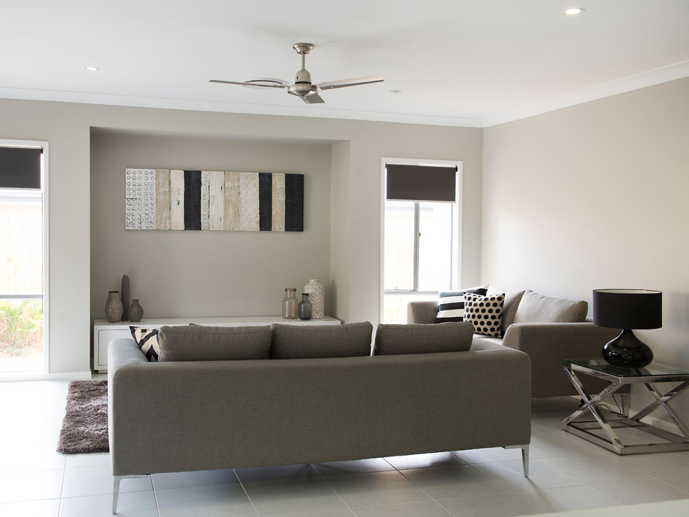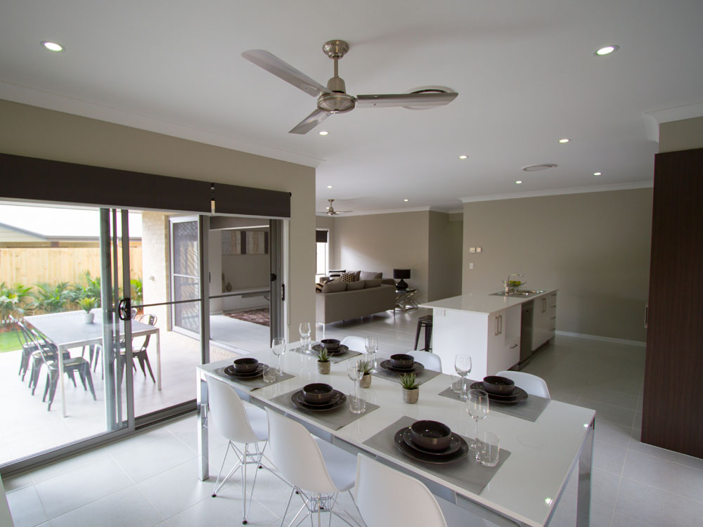 - White ceiling fans to living areas, bedrooms, and rear outdoor living