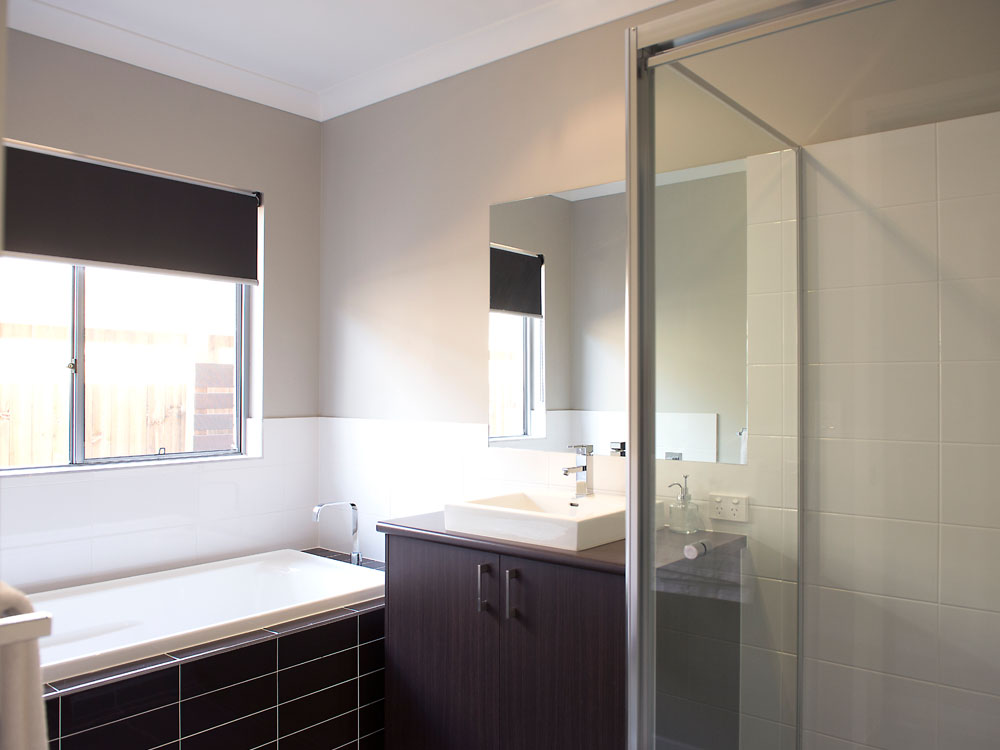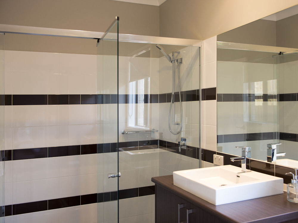 - Standard 6mm semi-frameless shower screens with clear glass and polished silver frame