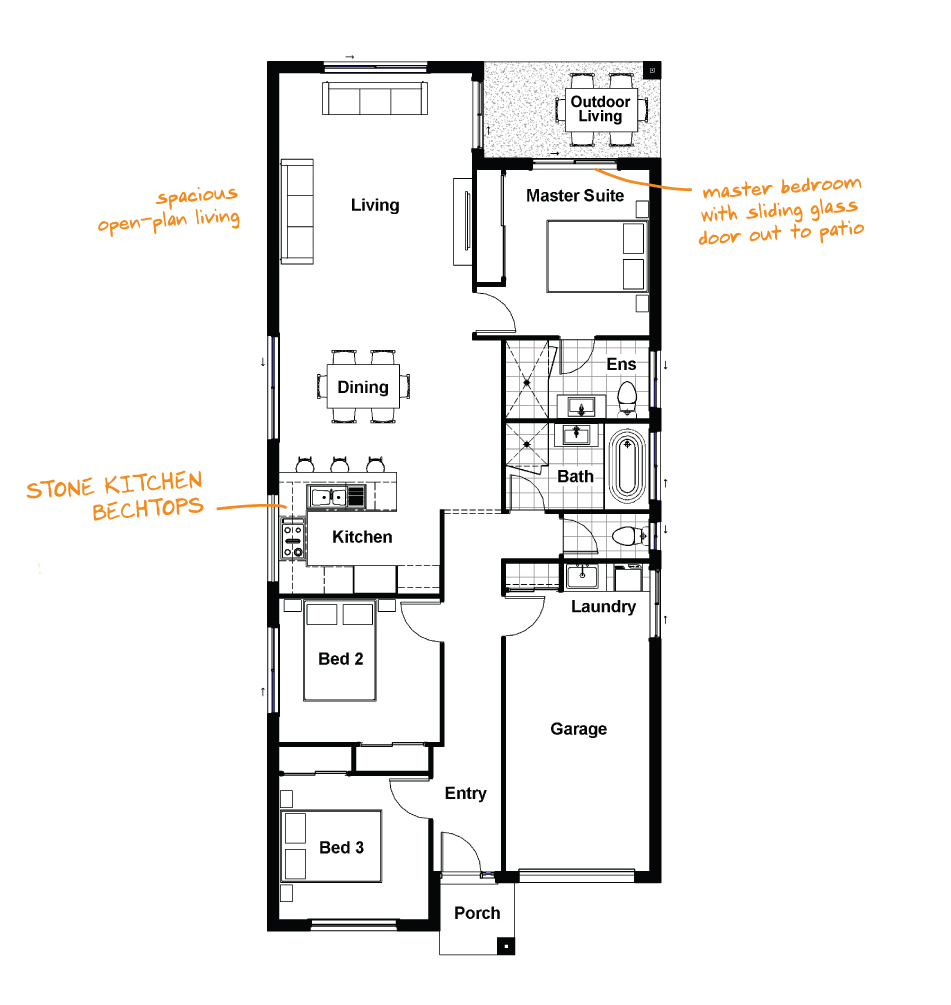 Scroll over the categories below to see the standard inclusions for each part of the home: