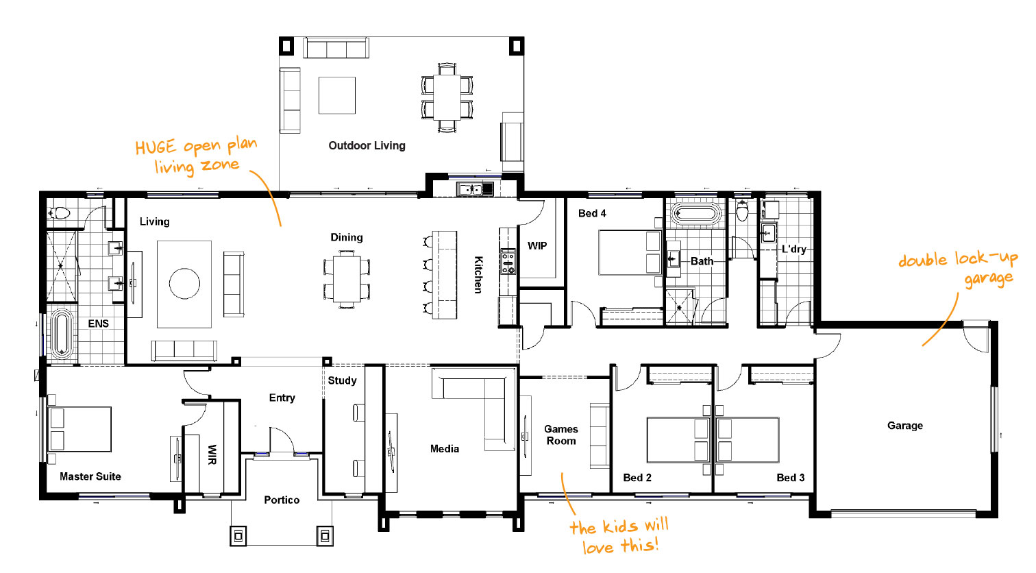 - Quality carpet with standard 10mm underlay from selected range to bedrooms, study, and media room (design specific)