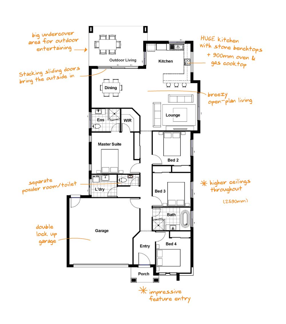 Scroll over the categories below to see the standard inclusions for each part of the home: